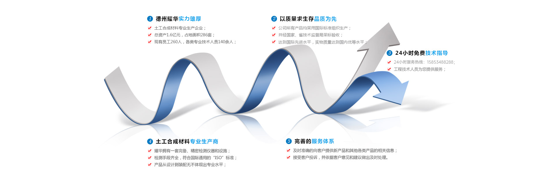 德州耀華土工材料有限公司是目前全國較大、品種其全的土工合成材料專業(yè)生產企業(yè),主要產品有復合土工膜、HDPE土工膜、長絲土工布、防草布、防水土工布、水庫防滲膜、防水板、生態(tài)袋、三維復合排水網(wǎng)、長絲機織土工布、EVA土工膜、無紡布、6.2m寬幅短纖針刺無紡布、6.0m寬幅土工膜、復合防水板、6.0m幅寬長絲土布等。本公司有年產萬噸滌(丙)短纖維兩用生產線、無紡布、PE防水板、復合膜等10余條生產線,工藝技術先進。HDPE土工膜、復合土工膜價格低廉...【更多】